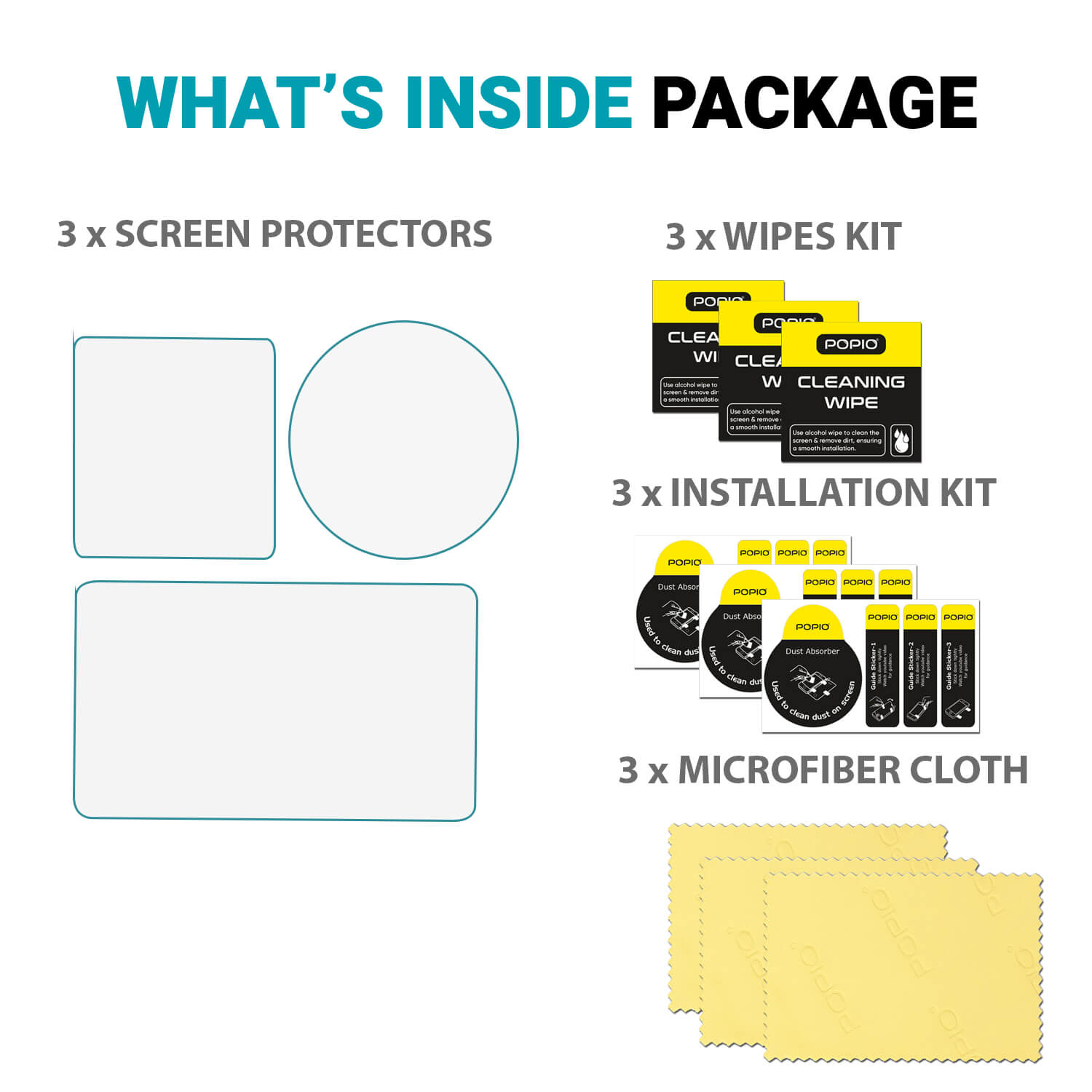 One package covers everything. You get precision-engineered tempered glass for the Main Rear Touchscreen, the Front OLED Screen, and the Camera Lens.