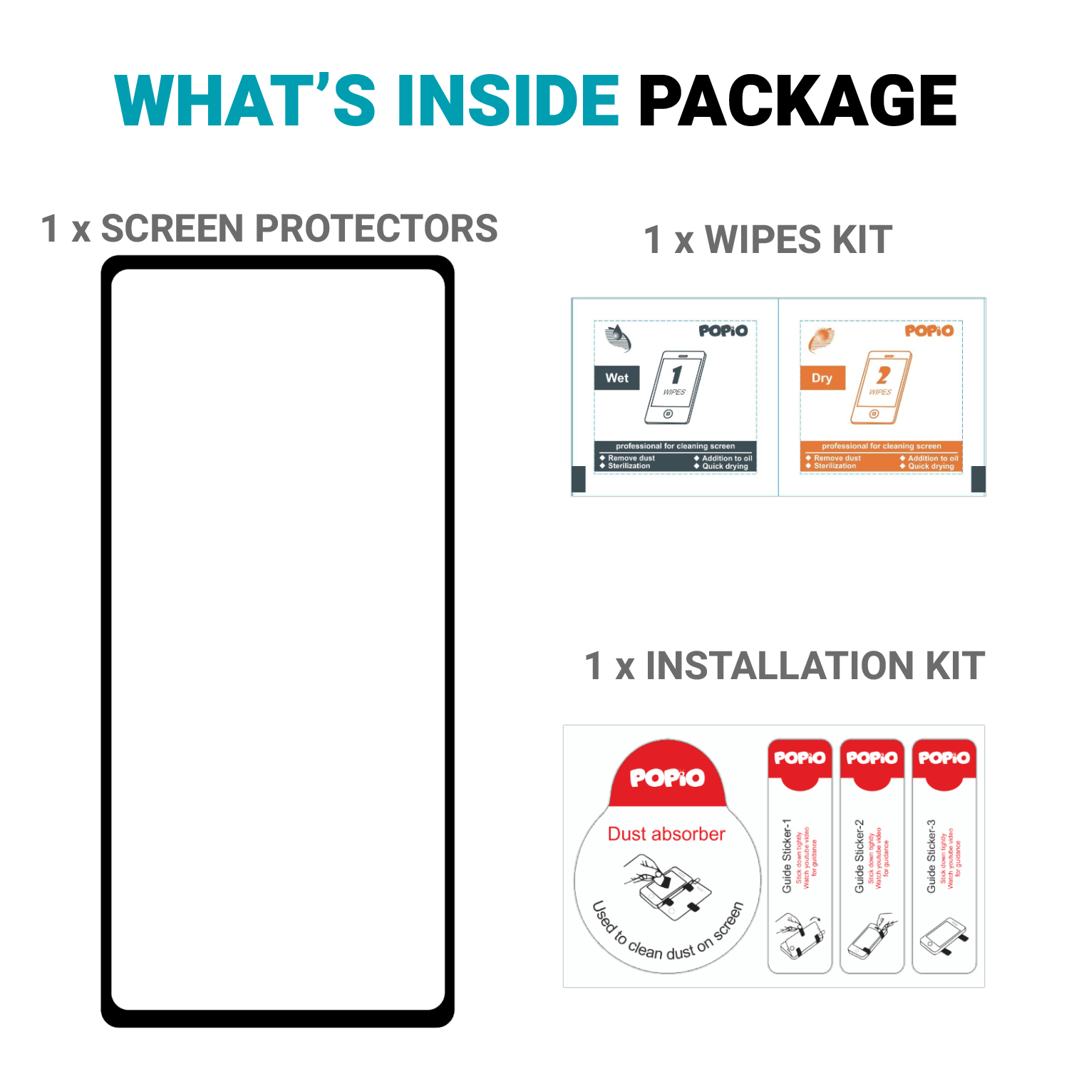 - 1 × Easy Installation Kit (cleaning wipes, dust remover, applicator tools)