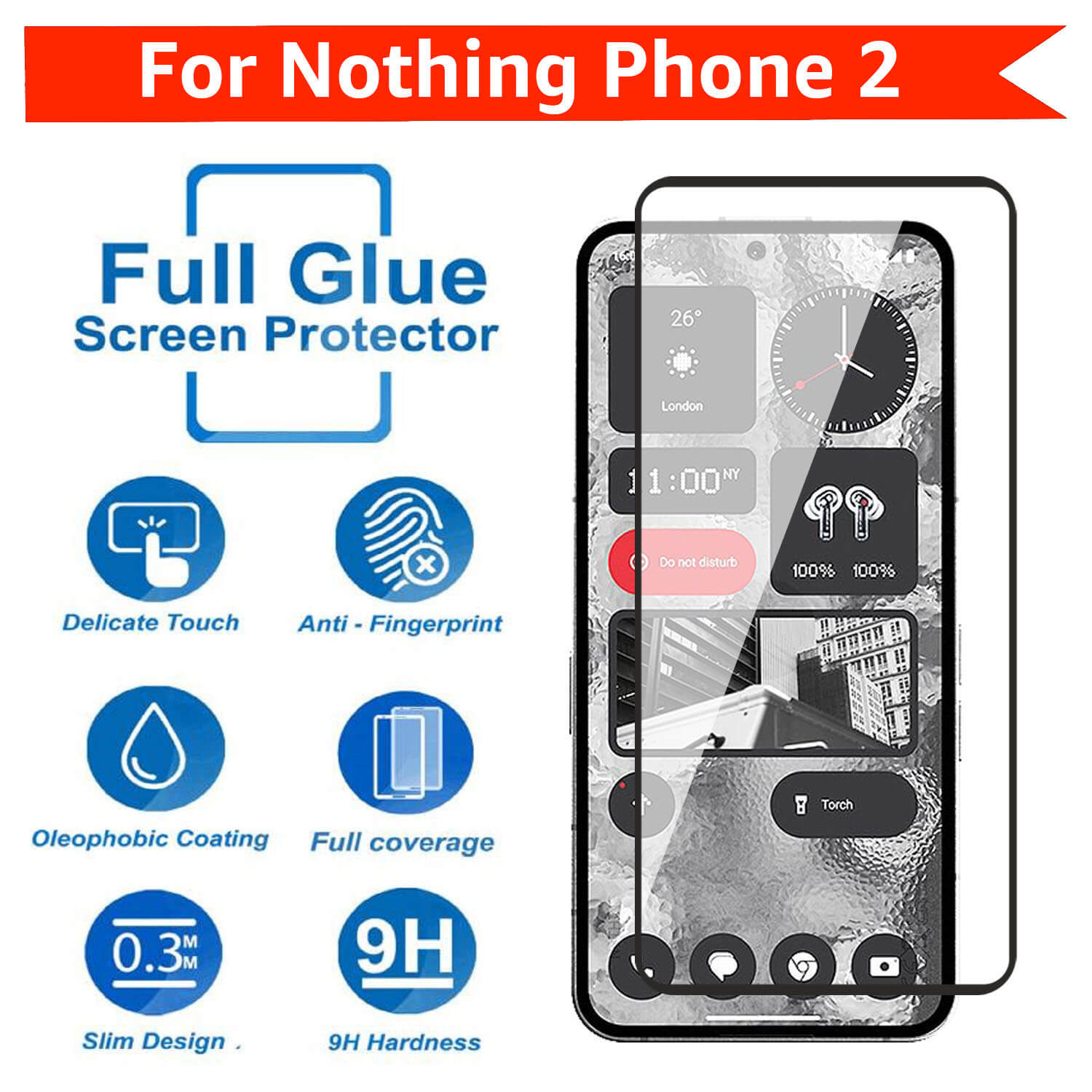 - 1 Piece Tempered glass screen protector For Nothing Phone 2